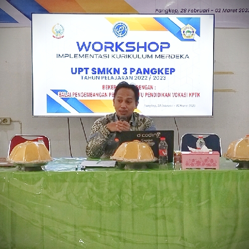 Sambutan KASI SMK Wil IX Pangkep pada Workshop implementasi kurikulum merdeka